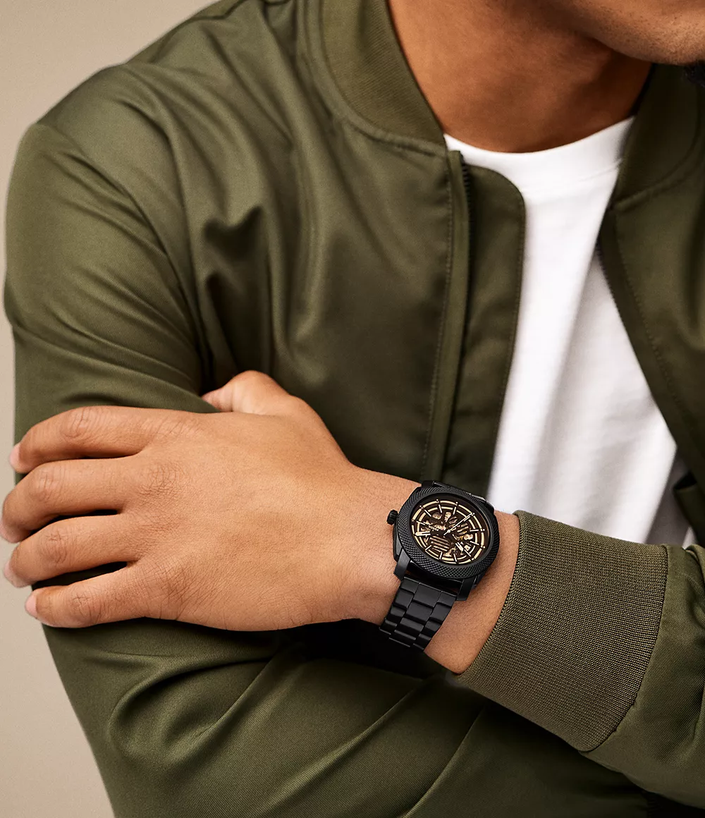 The Fossil Machine Automatic Black Stainless Steel watch is a perfect blend of modern sophistication and timeless elegance. Its sleek design is complemented by the striking black stainless steel finish, making it a statement piece for any occasion.